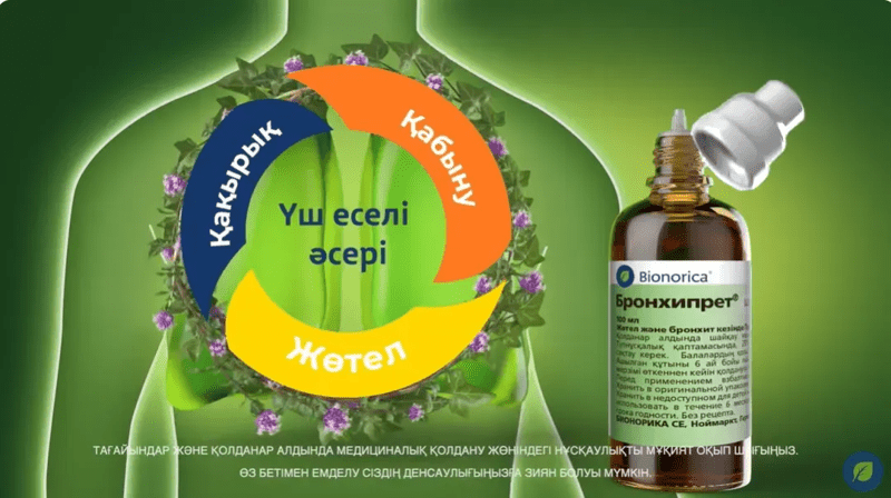 Бронхипрет® жөтелмен және қақырық бөлінуімен (трахеит, трахеобронхит, бронхит) жүретін тыныс алу жолдарының жедел және созылмалы қабыну ауруларын емдеуде қақырық түсіретін дәрі ретінде қолданылады.1,2.